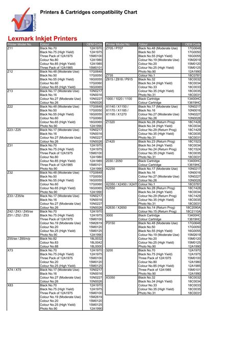 Lexmark Printer Cartridge Compatibility Chart